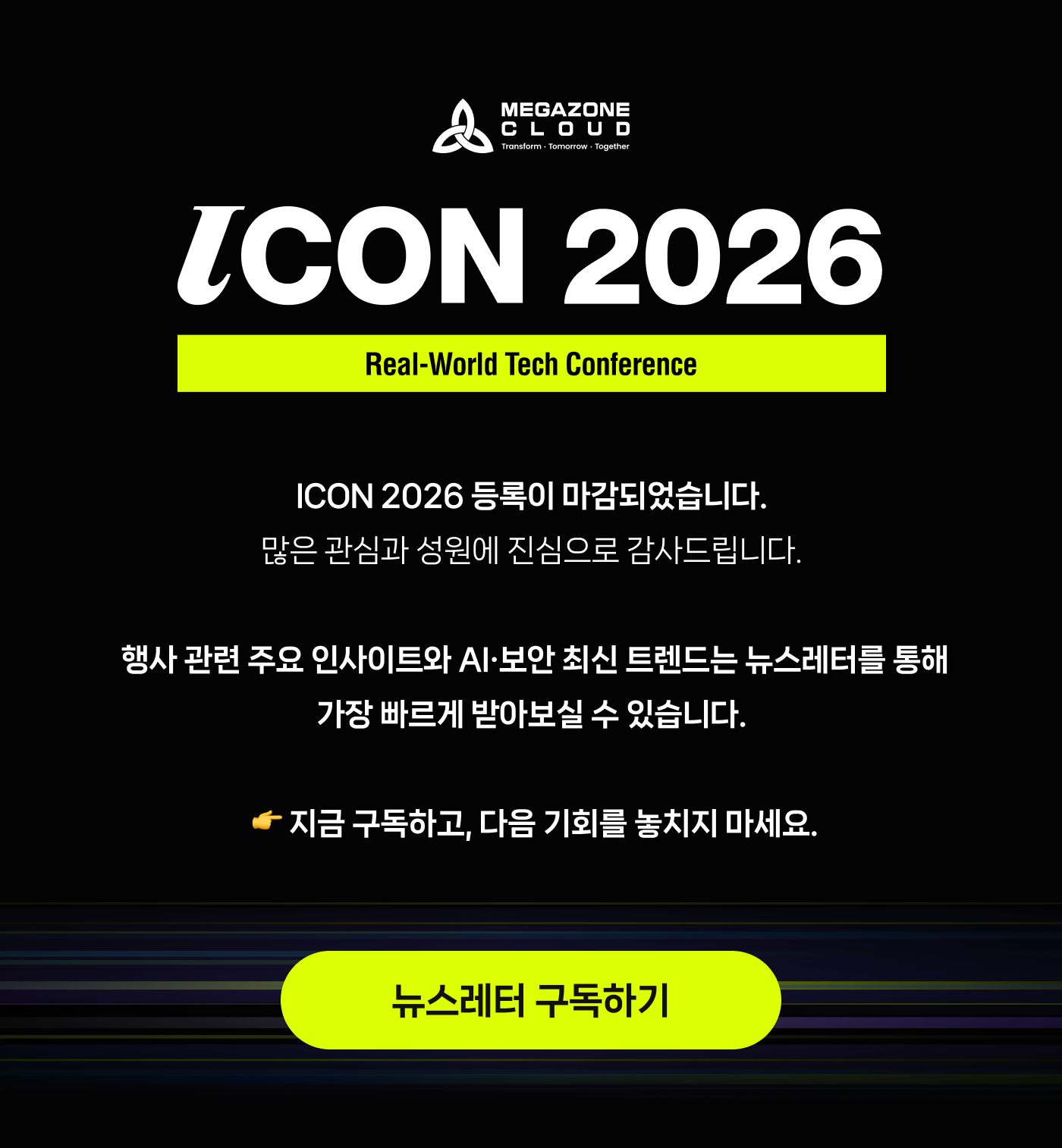 AICON 2026 관련 궁금하신 내용은 운영사무국으로 문의 부탁드리겠습니다. *운영사무국 : icon@megazone.com